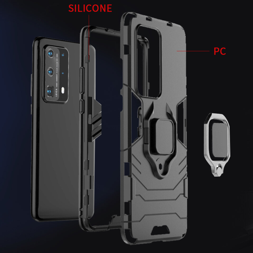 • Bakeey Armor Shockproof Magnetic with 360 Rotation Finger Ring Holder Stand PC Protective Case for Huawei P40 Pro                                                COD