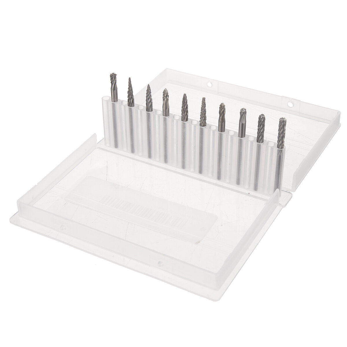 10Pcs 3mm Routing Router Drill Bits Set For Dremel Carbide Rotary Burrs Tools Wood Stone Metal Root Carving Milling Cutter Tools                                                COD