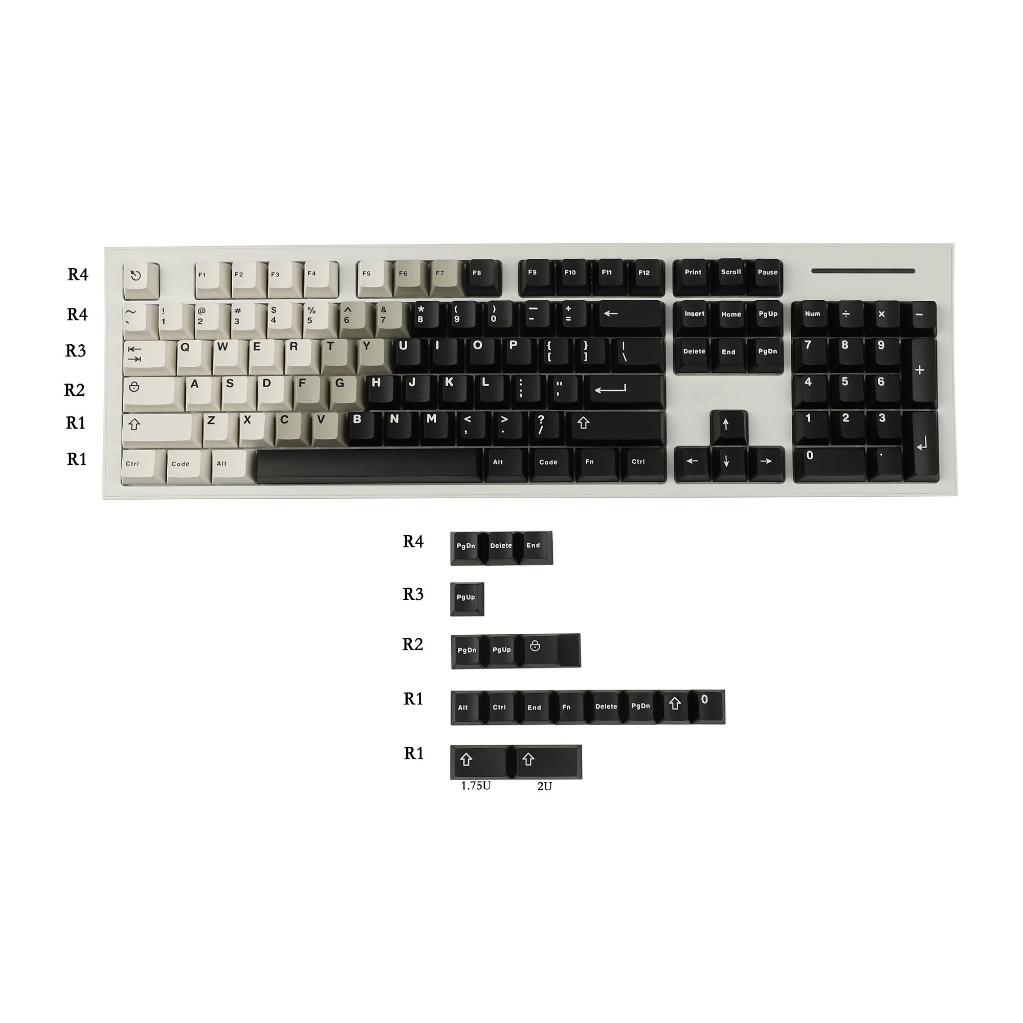 1x 121 Keys Bagua Keycaps + Keycap puller Details: 3.The classic style keycaps is made of around 45% PBT and 45% ABS and some other material.The surface is very smooth.However it won't oil after some time usage. 4. The injection point is on the corner back of the keycaps.This is not defects. 1. Compatible with ANSI Mx mechanical keyboard 61 64 68 75 84 87 96 104 108 layout whose space is 6.25u,namely 11.7cm. 2.Compatible with Ducky SF Mini /Womier 66 etc. 3. Compatible with GMMK Pro /NJ80 /KBD67 /KBD75. The layout which needs 1.5u Ctrl Alt can't use 4. If you don't mind to use Shift key as space,it can be compatible with SP75 SP64 as well. 5. It's not compatible with low profile switches mechanical keyboard.The big keys can't use. 6. It's not compatible with Razer keyboard.