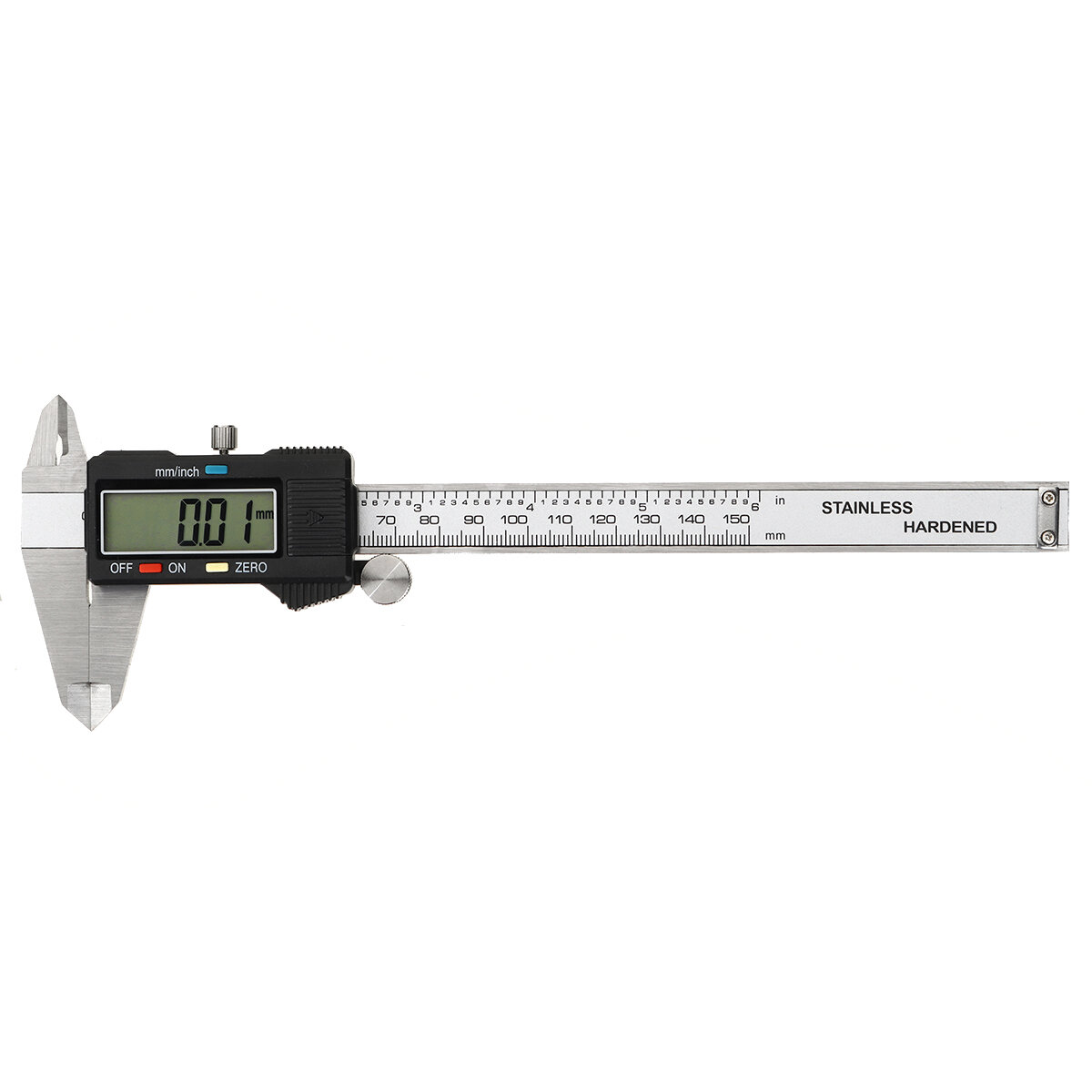 1. Zero setting in any position.2. Handy conversion chart at the back.3. With easy to read large LCD display.4. Base measuring function: Inside, outside5. Two way measurement, internal and external6. With a small locking thumb screw which locks the jaws in place7. One button quick switch between two units: Inch and millimeter, definitely save your time. Package Included: