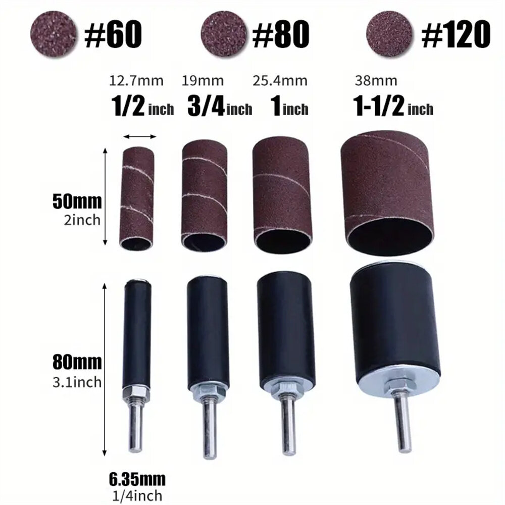 1. Versatile Use: This sandpaper set is perfect for polishing and grinding wood carving, metal, plastic, gemstone, and DIY creations thus making it a tool with a broad range of applications. 2. Practical Installation: The setup involves slipping the sandpaper ring into the rubber wheel and tightening the screw until the rubber expands, securely holding the sandpaper. 3. Comprehensive Set: The set boasts an assortment of sandpaper grains and sizes, giving you the flexibility to choose the optimal tool for every project. 4. High-Quality Material: Made from robust rubber, the sandpaper set ensures durable and reliable use over extended periods. 5. Compatible with Electric Drills: Designed to fit seamlessly with electric drills, this sandpaper set takes utility and convenience to a whole new level.