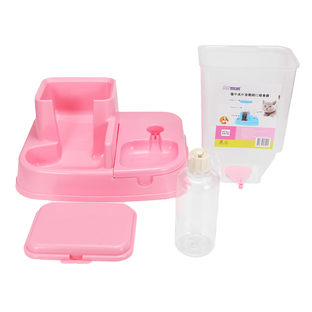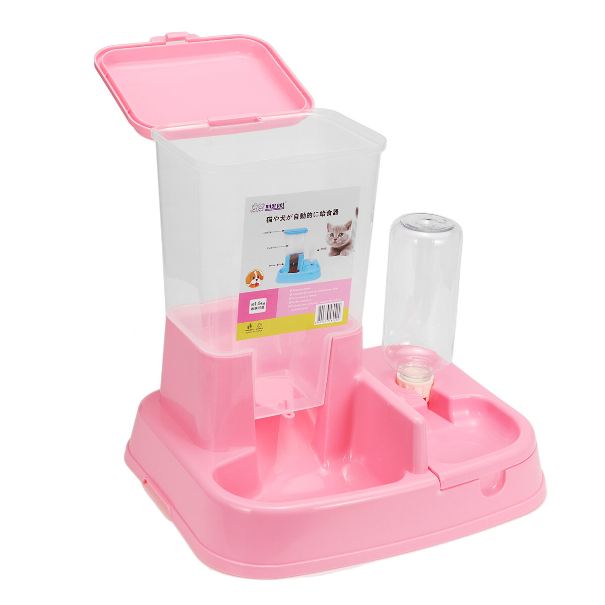 Color: Pink, Blue, Green(Option)Material: Envrionment-friendly ABS ResinSize: Approx. 33x26x39cm/ 12.99x10.24x15.35"Water Capacity: 400mlFood Capacity: 6kg Features: ▶ 2 in 1 Water, Food ▶ Made of high and fine qualtiy material-plastic, durable and non-toxic for dogs, so you can feel comfortable to buy it as a gift for your pet dogs.▶ The top of the feeding bucket has a lid to take and put the grain in.▶ Pratical and economic.▶ You will not worry your dogs have nothing to eat and drink when you are not at home due to the feeder is automatic. Package Included:
