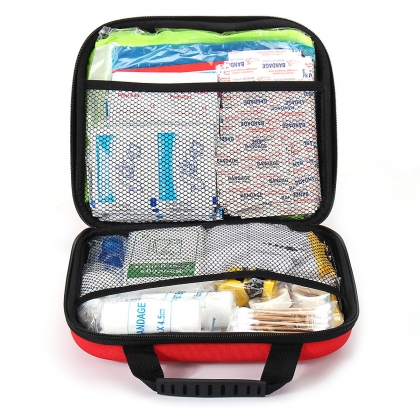 Features : - Fully equipped, powerful & practical. 238Pcs/set, all the accessories can meet all your needs. Every item in the case is full of useful.- With Mouth to Mouth Mask, quick save.- A Must-have accessory for outdoor sports, it included eslastic bandag, blood sucker bandage, sterile application, mouth to mouth Mask etc.- Ideal for people who love outdoor activities, such as camping, hiking, trekking, hunting, and so on.- Lightweight and portable bag, easy to carry.Suitable for outdoor camping and hiking emergency self-help, family life emergency needs, car security survival package, Drill education teaching etc. First Aid BagMaterial:Nylon+Fabric