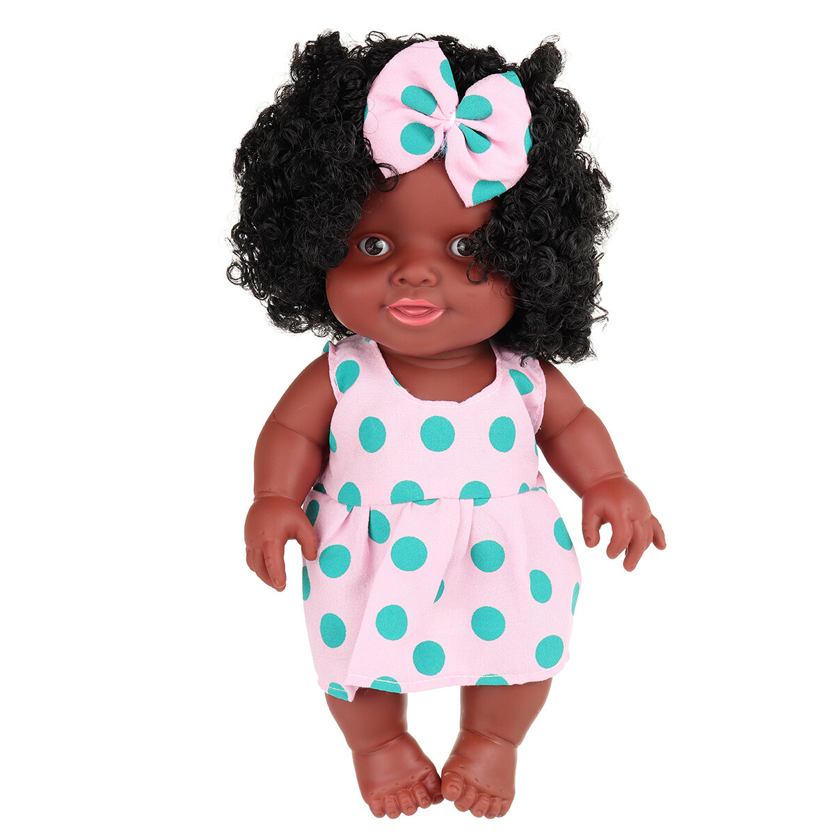 25CM Cute Soft Silicone Joint Movable Lifelike Realistic African Black Reborn Baby Doll for Kids Gift