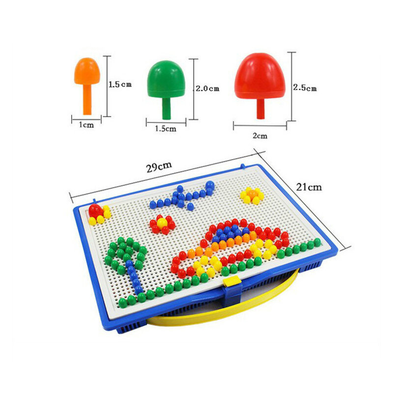 Item Name: Puzzle Peg Board Set ToysWeight: 300g/400g (Optional)Maretial: ABS plasticColor: Mix ColorMinimum Age: 3 years old Style:A-296pcs mushroom nailB-296pcs mushroom nail+84 alphabet nailC-592pcs mushroom nailD-592pcs mushroom nail+84 alphabet nailPegboard Dimension(approx.): 29x21x3.5cm - The jigsaw puzzle comes with 296/592pcs mix colours and sizes mushroom nails, storage basket with pegboard, and gift package box. It is suitable for kids age over 3 years old under adult supervision (small parts choking danger warning)- Safety Material: Made of high quality eco-friendly ABS plastic, bright colour, round smooth surface, very safe for your children to play with- Fun & Imagination: It is a lot of fun for kids to DIY many figures with those cute mushroom nails such as butterfly, letters, numbers, house, animals, plats, flowers and so on- Portable & Convenient: The storage basket comes with handle for easy carrying wherever you want to play, it is also a good tidy storage for mushroom nails, fast clean up when finish playing- A nice early learning educational toys set to develop children's IQ, creativity, imagination, recognition, coordinate kids' hands, eyes, heads, develop kids intelligence in playing. A: 296 x mushroom nail1 x pegboard1 x storage container B: 296 x mushroom nail84 x Alphanumeric nail1 x pegboard1 x storage container C: 592 x mushroom nail1 x pegboard1 x storage container D: 592 x mushroom nail84 x Alphanumeric nail1 x pegboard1 x storage container