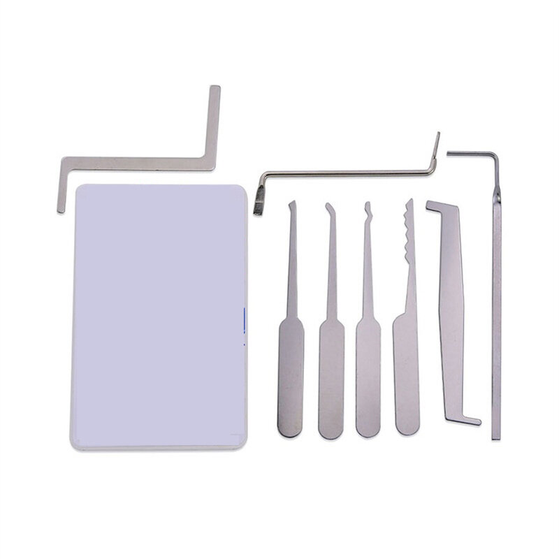 1. The stainless steel hook lock pick set is specifically designed for locks with small or narrow keyways. 3. The fantastic designed picks include most styles of rake, hook, riffle, diamond and diamond-hook. Specification: 1. 100% Brand New and High Quality 3. In perfect smooth working condition with no loose parts or pins will come out 5. Great for beginners, excellent teaching & training tool 1. This lock pick tool can be used to open most of pin tumbler locks, double track car locks. 3. With strong jump head and big adjustable extent. Color : Silver Dimensions : 4.02 in x 0.51 in x 4.02 in (10.2 cm x 1.3 cm x 10.2 cm) 2. 5pcs lock picks training tool (in 1pc x credit card designed case) Comes with a credit card design ed case for storage and easy carrying. Product color: Silver Lock pick size: about 7.3 x 1.2 x 0.2cm (1pc) 6pcs Padlock Shim Picks Set: Padlock shims are formed pieces of thin yet stiff metal designed to take advantage of mechanical imperfections and tolerances in the latching design of some popular brands/models of locks. In other words, padlock shims are a bypass tool, not a pick. Just push one down between the hasp and the body of the lock and twist to disengage the locking mechanism. Pretty slick ! Package included: 1 x Padlock Set with 2 Keys 1 x Black PU Bag 6 x Tension Wrenches 4 x Torsion Tools ![]() ![]() ![]() ![]() ![]() ![]() ![]() ![]() ![]()