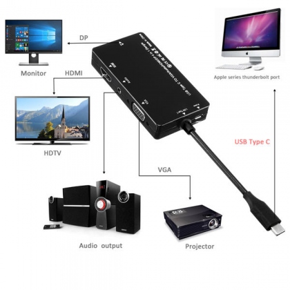 1 X Type-C TO VGA Audio HDMI DP Adapter 4 in 1 Dongle USB Type-C TO VGA Audio HDMI DP Adapter Hub HD 1280P Splitter
