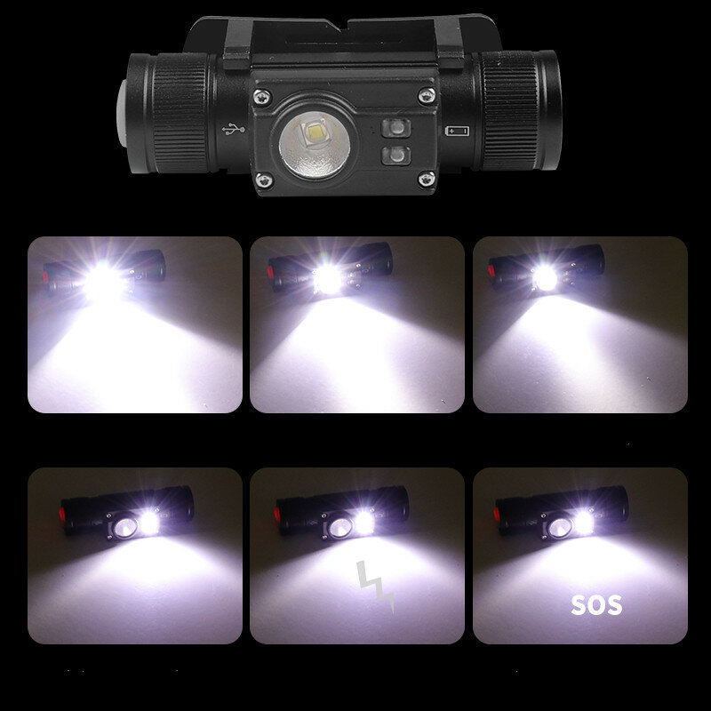 46G XTE+COB Outdoor Camping Headlamp 180°LED Built in 800 mA 18650 Battery USB Rechargeable for Hiking Fishing Camping Waterproof Lamp Flashlight Headlamp