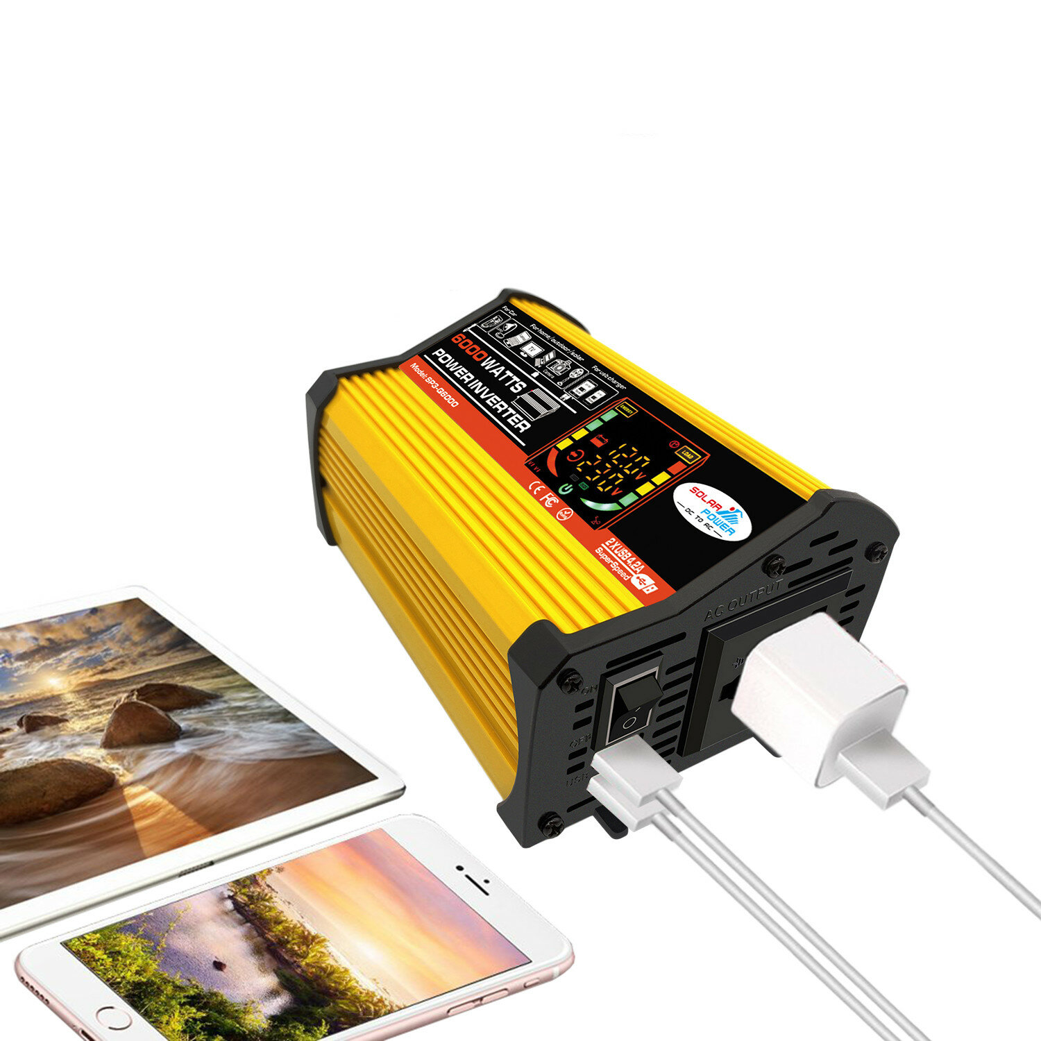 Features: ▲6000W Power inverter Car power inverter with 2 USB ports and AC outlet. The power inverter comes with free lighter and 2pcs battery clips,providing 500Watt continuous power, 6000watt peak power (Please make sure that the total rated power of the connected devices is ≤ 500W).