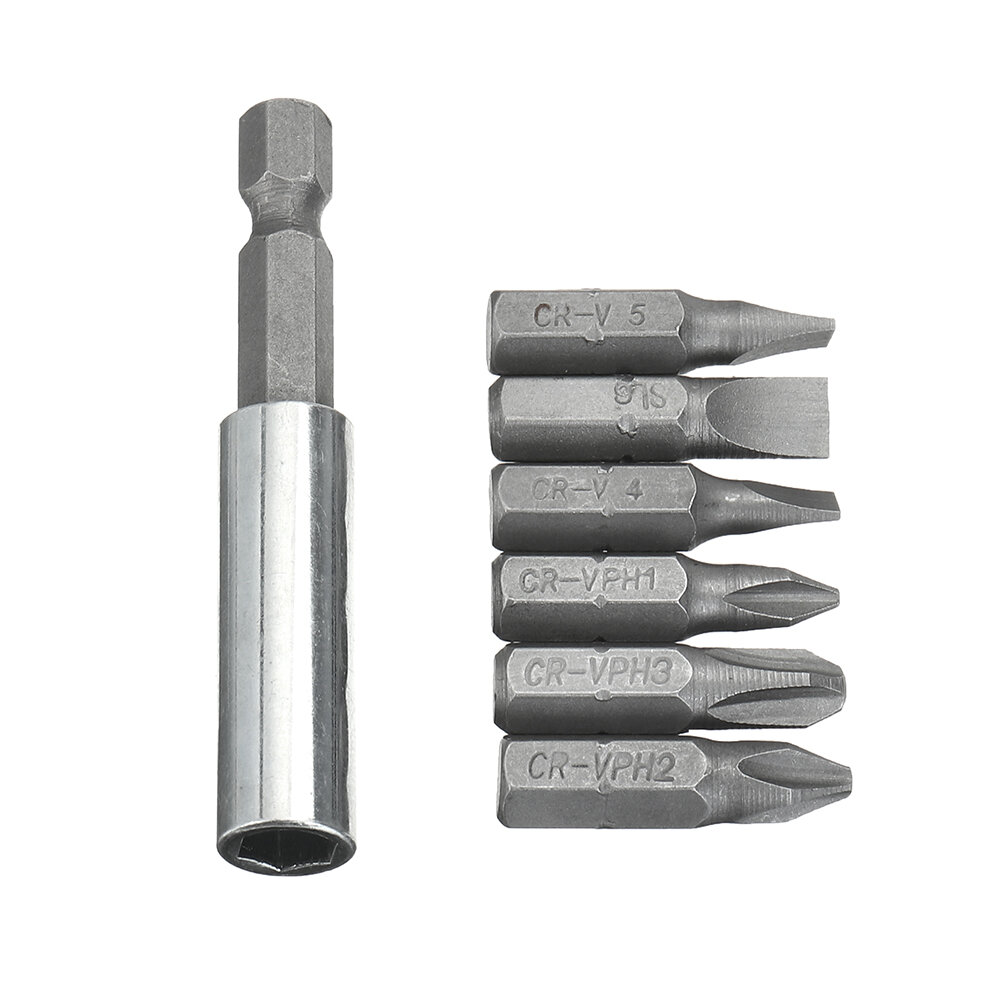 7PCS Precision Screwdriver Bit Set with 25mm Length PH1 PH2 PH3 SL4 SL5 SL6 Bits and 60mm Extension Bar Universal CRV Material Compatible with All Manual and Power Screwdrivers