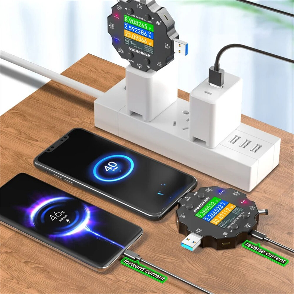 Auto Scan Fast Charging Detection: Our meter facilitates fast charging automatic scanning detection, effortlessly supporting multiple protocols such as APPLE, SS2P0, BC1P2, TYC, QC2A, QC2B, QC3A, QC3B, AFC, FCP, SCP, HISCP, VIVO, and more.