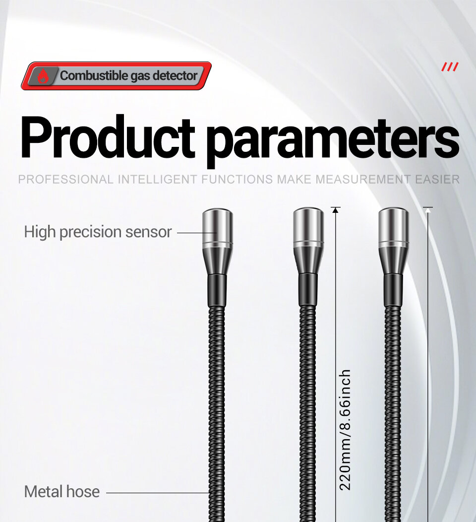 High Sensitivity Sensor: The ANENG GN803 Combustible Gas Leak Detector is equipped with a gas-sensitive semiconductor sensor with a detection range of 300-10000PPM, ensuring highly precise measurements of potentially harmful gases. Intuitive Alarm system: Designed for maximum safety, this detector promptly alerts users of gas levels exceeding safe limits using a screen simulation bar display and beep signals - enabling users to take action immediately. Adjustable Sensitivity Levels: The device provides an option to switch between high and low sensitivity levels according to the environment, making it versatile for various scenarios. Detects Alcohol Ethanol: The premium high-precision gas sensor can accurately identify alcohol ethanol, proving its utility in a wide variety of situations. Flexible Metal Hose: The bendable, all-metal hose allows for long-distance detection and ensures more convenience, making this detector an essential tool for safety and precaution measures.