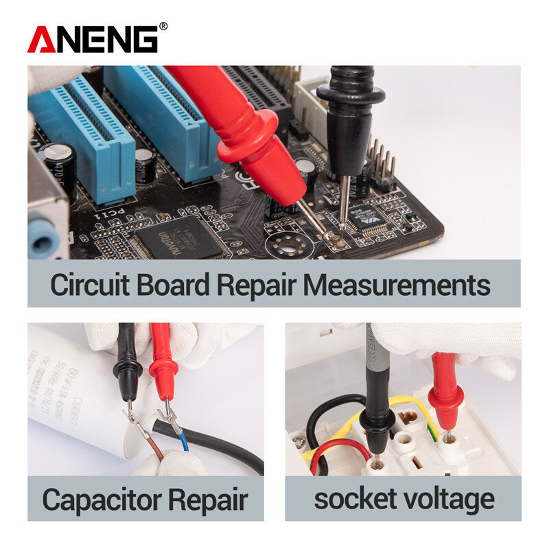 Provide more accuracy and long service life. Specification: Current: 10A Black / Red Material: PVC / brass The probes are sensitive and very suitable for IC pins, LED and small components.