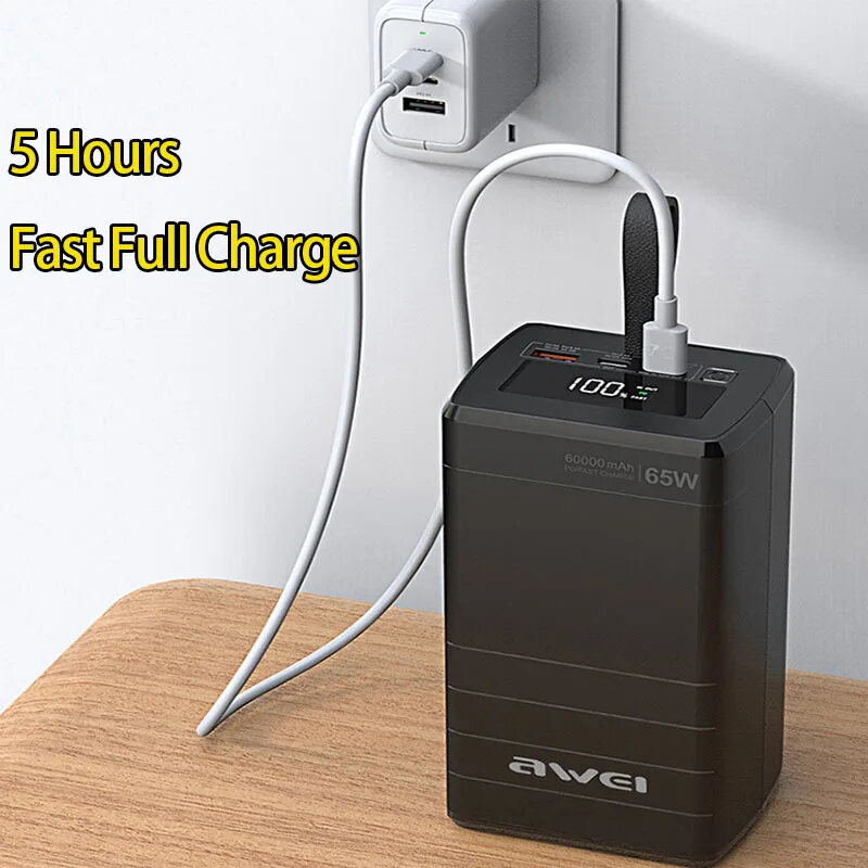 1. High Power Output: With a maximum power of 65W, this power bank can charge various devices quickly and efficiently. 3. Multiple Output Options: The Type-C(1) port supports a maximum output of 65W, while the Type-C(2) port supports a maximum output of 18W. Additionally, the USB-A port offers a maximum output of 22.5W. 5. Compact and Lightweight: With dimensions measuring 159.5*84*65mm and weighing only 1331g, this power bank is portable and easy to carry.