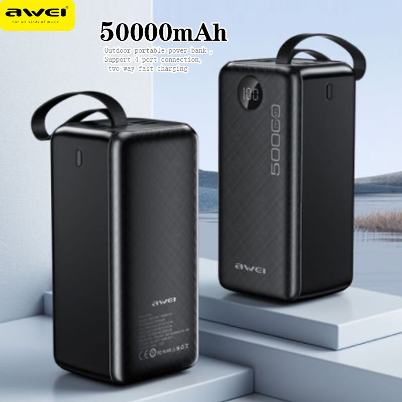 • Awei P36K 50000mAh Power Bank External Battery Power Supply with 4USB Fast Charging for iPhone 12 13 14 14 Pro 14Pro Max for Huawei Mate50 for Samsung Galaxy S23
