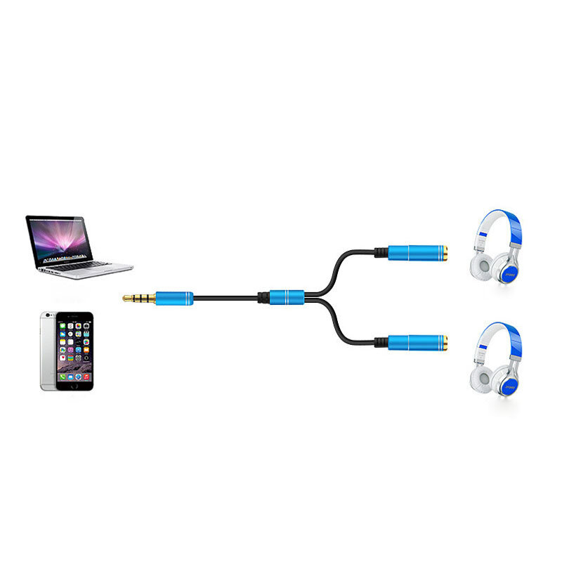 Scope of application: Product Name: Metal 3.5mm 2 In 1 Headphone Extension CableProduct color: Gold,Grey, Blue, Pink, BlackProduct specifications: outer diameter: 3.0mm length 35CMMaterial composition: TPE high elastic lineInterface form: 3.5 male 4 section to 2 three-pole female seat Package Includes: