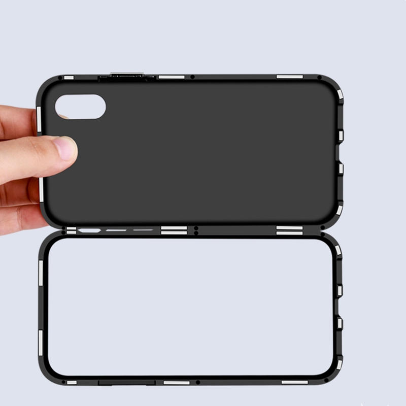 • Bakeey Magnetic Adsorption Aluminum Glass Protective Case with Tempered Glass for iPhone X                                                COD