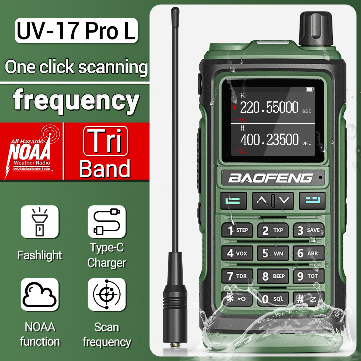 Baofeng UV-17pro M L High Power Walkie Talkie 136-520MHz Three Band Portable Handheld Two-way Radio Intercom with 1.77 inch Color Screen FM Radio Flashlight European Standard