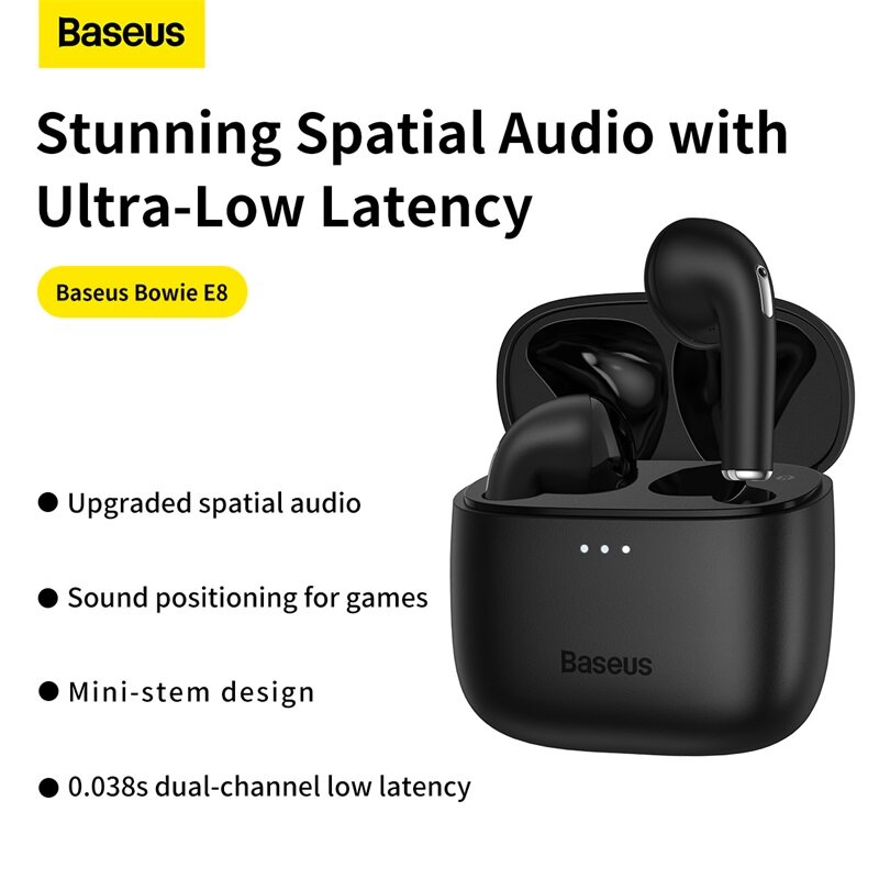 • Baseus Bowie E8 TWS bluetooth 5.3 Earphone 10mm Titanized Composite Diaphragm EQ Stereo Dual-Channel Low Latency Semi-in-ear Sports Earphone                                                COD