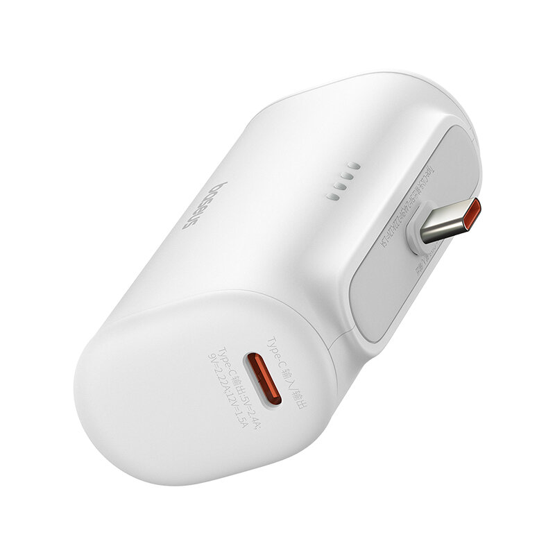 Features: 2. Fast charging: With its Type-C/Type-C Male Head input and output, the power bank supports fast charging at various voltages, making it convenient for quick charging on the go. 4. Compact and lightweight design: Measuring 80*40.2*25.6mm in size and weighing only 100g, the power bank is easy to carry and perfect for travel or daily use. Package includes: 1x Baseus PPWCO5T Plug-type Power Bank