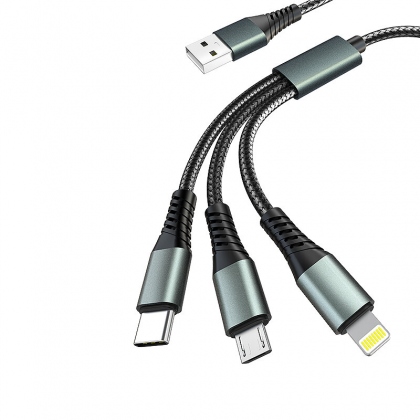 • BYZ BL-675 5A USB-A to iP/Type-C/Micro Cable Fast Charging Copper Core Line 1.2M Long for iPhone 12 13 14 14 Pro for Huawei Mate50 for Samsung Galaxy S23 for Oppo Reno9