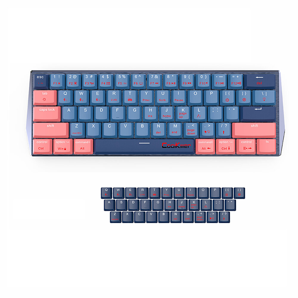 • Tri-mode: Wired / 2.4G / Bluetooth (3 devices can be connected)• Lighting: RGB• Edge lighting: RGB• Solution: BYK916+BK3632• Dual system: Windows and for Mac, also supports iOS and Android systems• Interface: TYPE-C• Keycaps: Laser engraving with white font, silk screen printing with red font• High and extra low shaft: ultra-thin brown shaft (lightweight feel)• Quiet cotton: enhanced feel, noise reduction and shock absorption• Wire: 1.8m leather wire• Two-color tripod: The keyboard is as stable as a mountain• Voltage : USB 5V• Total number of keys: 61 keys• Current : Max 180MA• Lithium battery capacity: 1600MA• Size: 303.8*100.2*22.6MM Features: >Minimalistic Low-Profile design.>RGB Backlight with multiple lighting effects.>Dual-tone injection-molded PC keycaps.>Custom-developed low-profile mechanical switches.>Super compact and thin design.>High-quality aluminum alloy positioning plate.>Quiet operation with acoustic cotton-padded structure.>Built-in 1600mAh battery.>Triple-connection modes.>Driver support for RGB adjustments and Macro definitions.