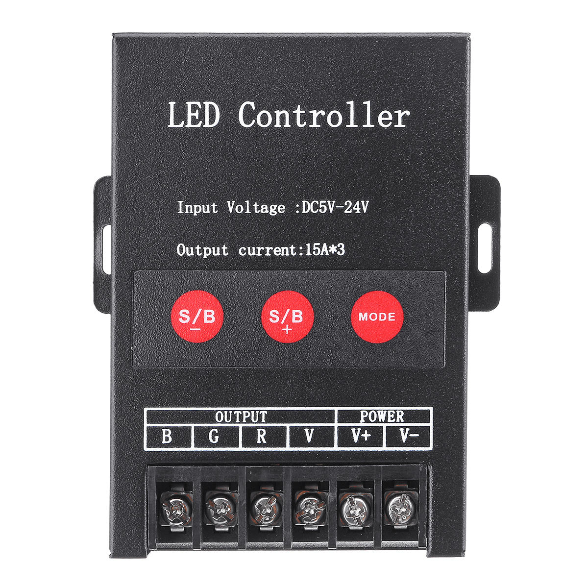 540W12V-GLC-V1 RGB controller is a use of the most advanced PWM(Pulse Width Modulation) digital control technology; switching can be achieved in different colors(jump), brightness adjustment, speed adjustment function, widely used in building lighting, KTV, bars and other night games, mainly for LED products: LED colorful hard/soft light bar, LED perforation lights, LED modules, etc.Input Voltage: DC5V~24VOutput power: 15A*3Control mode: Common anodeDriving LEDS: Module : Colorful GBR 600PCSStrip: 30-5050 60M;60-5050 30MRGB Piercing Light: 600PCSSize: 110*90*25mmNet weight: 260gMax. Load Power: 5V/225W; 12V/540W; 24V/1080W