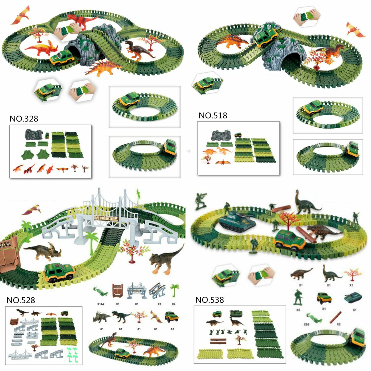 • Dinosaur Dino World Childrens Flexible Race Car Track Toys Construction Play-Set Toy                                                COD