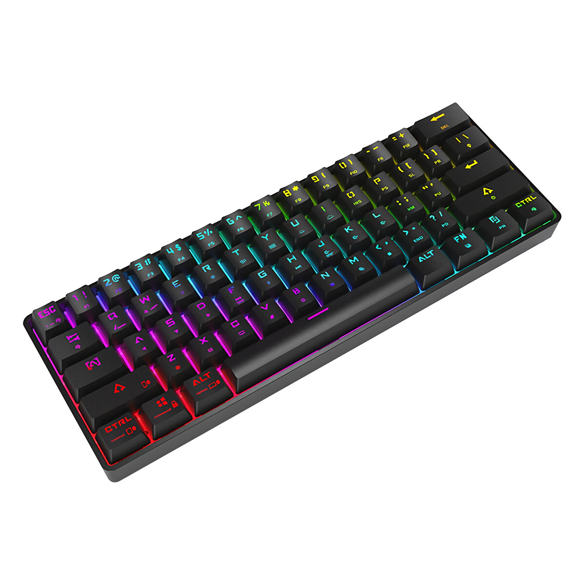 Specification: Model: DK61Color: Black/WhiteMaterial: ABSKeycap Material: ABS Double ColorConnection Method: Wireless bluetooth 5.0/USBInterface Type: Type-CNumber Of Keys: 61 KeysUsage Time: 10HStandby Time: 360HKeyboard Switch: Blue SwitchBacklight Color: RGBCompatible System: for Mac OS/IOS/Windows/AndroidCable Length: 1.5m/59.05inSize: about 291x101x39mm/11.45x3.97x1.53in Note: - Due to the light and screen difference, the item's color maybe slightly different from the pictures. Please understand.- Please allow 0.5-1 inch difference due to manual measurement. (1inch=2.54cm)