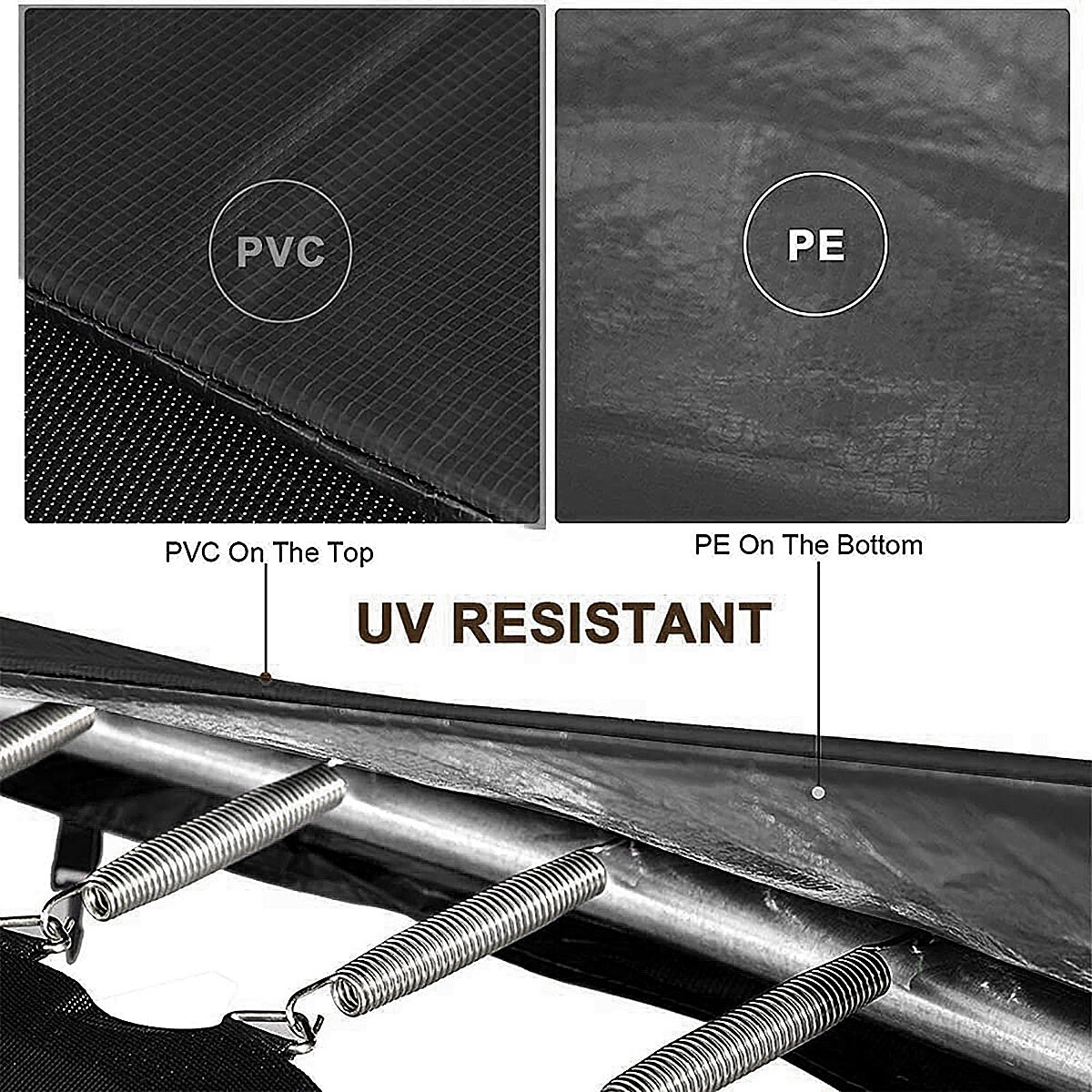 Model: TR-06 Material: PE Features: [NOT FIT SOME OTHER BRANDS OF TRAMPOLINE] This 8FT option pad only fits Doufit 8-foot framed trampoline. Please first measure your trampoline size (outer frame-to-frame diameter) and spring length, DO NOT make an assumption about your trampoline size. Confirm that you have selected the correct option. SAFETY GUARD: A wide and thickened pad protects jumpers from falling on the steel frame directly or getting pinched by the springs LONG-LASTING DURABILITY: The UV and water-resistant PVC cover on this replacement safety mat will protect your trampoline on rainy and sunny days alike; quality stitching prevents tears from everyday use. EDGE-TO-EDGE PROTECTION: this trampoline spring cover absorbs accidental bounces over the springs and gives you edge-to-edge protection for a safer jumping experience. EASY TO INSTALL: Simply use the straps underneath to attach this spring cover to your trampoline, taking only a few minutes to complete before you can get back to jumping. Note: 1. Please allow a 1-3cm error due to manual measurement. Please make sure you do not mind before you bid. 3. The shape or color of some accessories may be improved during the sale, but the functions are guaranteed to be the same. If you can't accept this, please don't buy it, please understand.