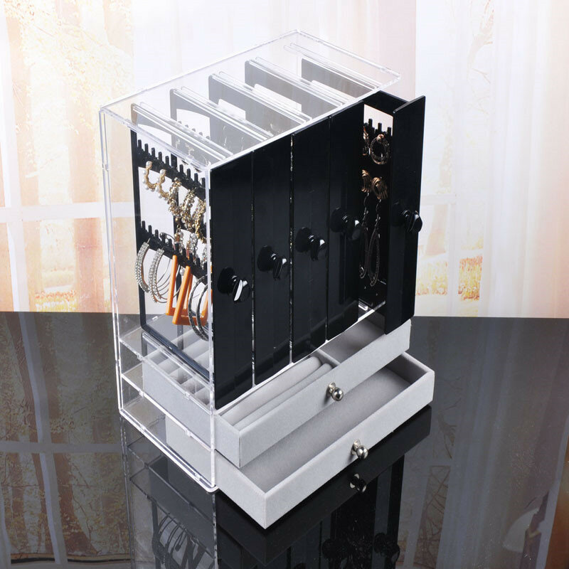 Dustproof Transparent Acrylic Earrings Jewelry Storage Box Desktop Display Stand Rack Tray Organizer COD