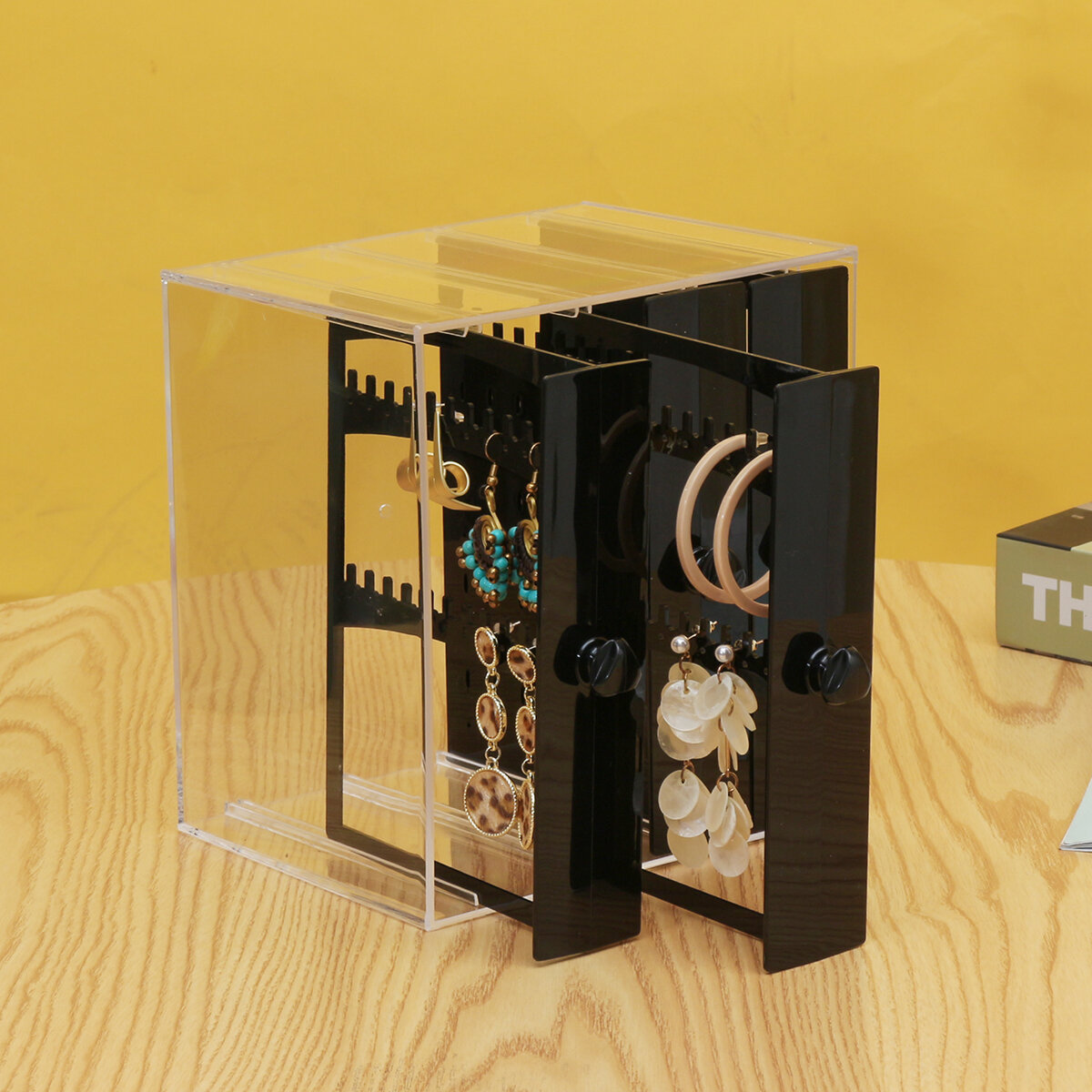 • Dustproof Transparent Acrylic Earrings Jewelry Storage Box Desktop Display Stand Rack Tray Organizer COD