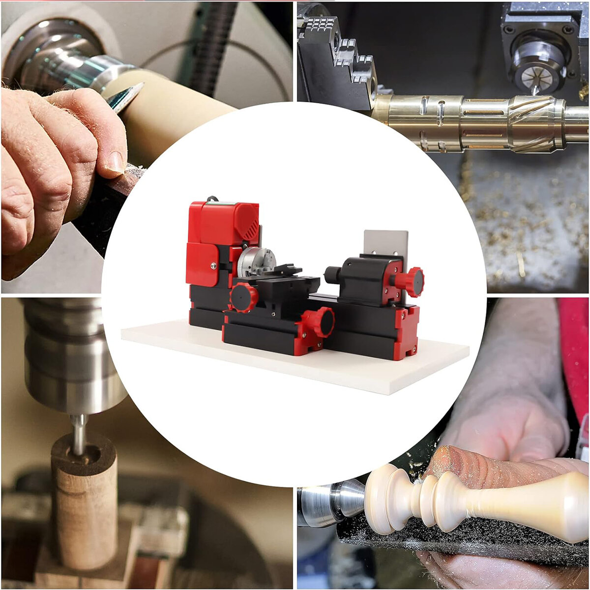 1. Durable Construction: The Mini Lathe Machine boasts high-quality aluminum and plastic construction, ensuring durability and robustness. It stands up to the rigors of processing metal material without bending or damage. 2. Versatile Machining: This machine is well-designed to fashion metal parts into various shapes, from round to conical, giving you the freedom to bring your creative visions to life. 3. High Processing Speed: Powered by a high-quality motor, the lathe achieves a speed of up to 20,000rpm/min. Less time processing means more time to enjoy the results of your hard work. 4. Compact and Portable: Measuring only 11*6*6 inches, this mini lathe is easy to store and transport. Its small size does not compromise on its functionality and performance. 5. Broad Material Processing Range: With the capacity to handle materials up to 1.77 inch in diameter and 5.31 inch in length, this mini lathe machine is versatile enough for both domestic and commercial use.