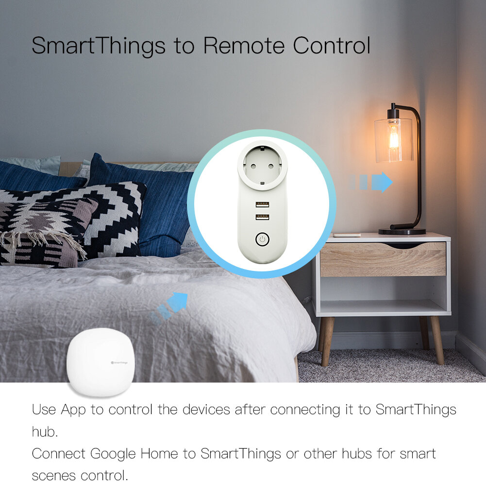 ZigBe Smart socket are designed for wireless home, office and hotel automation. Note:The 2 USB Interfaces can not be controlled separately.Simultaneous operation and power off.Compatible with Alexa Echo Plus hub,SmartThings hub to realize the whole linkage of your house,a really good substitution for unstable Wi-Fi. Control lights and home appliances through App or Amazon Alexa Smart Home App anytime from anywhere,as long as there is stable ZigBe signal.Voltage ranges from 100V to 240VConsidering the status of unstable network or no network,ZigBe 3.0 switch is really an irreplaceable must to combine with ZigBe gateway to form a home LAN,NO MORE WORRY about no network.You are able to freely control the appliances and enjoy a much more free lifestyle. Voltage Supply: AC100V~240V, 50/60HzMax Power Load: 10AWorking frequency: 2.4GHzStandby power consumption: ≤1.5WWireless reception sensitivity: <-90dBm 1 x Smart Socket1 x Instruction Manua