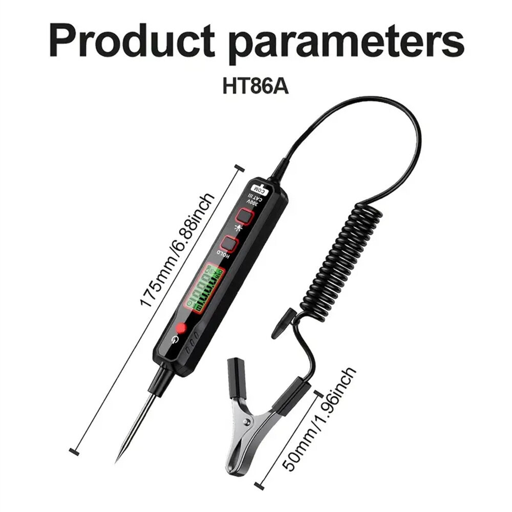 Car Circuit Tester: This digital tester is specifically designed for automobile fault maintenance and circuit testing. Backlight Display: The tester features a digital display with backlight, ensuring easy reading of measurement values in various lighting conditions. Voltage Testing: It is capable of accurately measuring car circuit voltage, providing essential information for diagnosing electrical issues. Durable Construction: Made from high-quality ABS material, this tester is sturdy and built to withstand rigorous use. Easy to Use: No assembly is required, making it convenient for immediate use. Portable Design: Compact and lightweight, it is easy to carry and store, making it ideal for on-the-go applications.