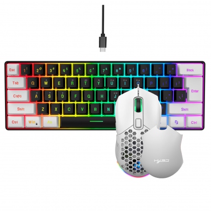Product function introduction: The keyboard compound key functions are controlled as follows: 4-1.Volume adjustment: FN+R key is volume reduction, FN+T key is volume increase,FN+Y key is mute; 4-2.Backlight adjustment: FN + U key streamer speed accelerates, FN + J streamer speed slows down, there are 5 speeds adjustable; always bright backlight cannot be adjusted; FN +O and FN + L adjust the backlight brightness, 5 levels adjustable; FN+ l: Backlight off/on, cyclic switching; FN+K: streamer light switching mode; FN+M: Monochrome light switching mode; 4-3. Compound function key switch: FN+1! key=F1 FN+2@ key=F2 FN+3# key=F3 FN+4$ key=F4 FN+5% key=F5 FN+6^ key=F6 FN+7& key=F7 FN+8* key=F8 FN+9 (Key=F9 FN+0) key=F10 FN+- key= F11 FN+ =+ key=F12 FN+Back key=Delete FN+ESC=` FN+ESC+Shift=~ Note: Short press Fn+W to switch the up, down, left, and right direction keys. Press Fn+W againto switch back to WASD Product specifications: Specification item: Product number Interface Type: USB1x Gaming keyboard 1x English User manual