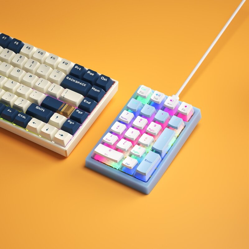 1. Pudding Style Keycap: The iBlancod K10 features a trendy and stylish pudding keycap design that not only looks visually appealing but also enhances key visibility and lighting effects. 2. RGB Backlight: The keyboard is equipped with RGB backlighting, allowing users to customize the lighting effects according to their preferences. Create stunning lighting displays that suit your mood or gaming style. 3. Compact and Portable: With its compact size of 133.4*87.6*41.6MM, the iBlancod K10 is highly portable and can easily fit into any small workspace or gaming setup. Take it with you wherever you go for uninterrupted typing or gaming sessions. 4. Type-C Wired Interface: The keyboard features a Type-C wired interface, providing a stable and reliable connection to your computer or gaming device. Enjoy fast and accurate keystrokes with minimal input lag. 5. Hot Swappable Switches: The iBlancod K10 supports hot swappable switches, allowing users to easily change or replace the switches without soldering. Customize your typing experience by switching to different switch types based on your preferences. 1 x Numeric Keypad 1 x Key Puller