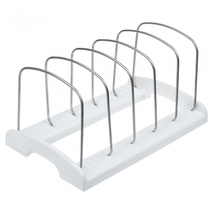 Product Name: Baking storage rack Material: PP + Stainless steel Color: White Size: 288mm/11.34in x 180mm/7.09in x 156mm/6.14in (L x W x H) Quantity: 1pc - Organize pans, platters, pot lids and cutting boards in the cabinet or pantry. - Customize your storage with 6 adjustable dividers to perfectly fit items so it's easy to find and remove one thing at a time. - Vertical storage and steel wires protect valuable cookware and serving pieces from chips and scratches. - Soft non-slip feet hold the pan organizer firmly in place inside the cabinet. 1 Pc x Baking Storage Rack() More Details: ![]() ![]() ![]() ![]() ![]() ![]() ![]() ![]() ![]() ![]() Hot Products