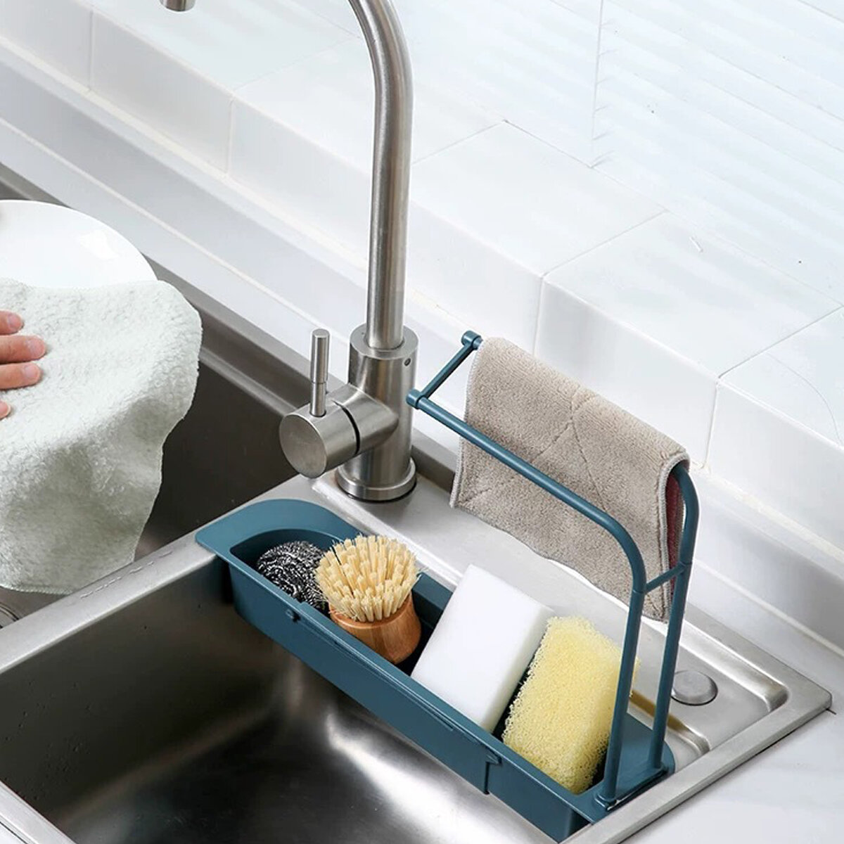 - Name: Telescopic Sink Rack- Model: G07564- Color: White/Blue/Gray/Pink- Materials: ABS- Telescopic Range: 36-50cm/14-20in Features: - Easy to store: Easy store cleaning supplies, such as tableware liquids, ball brushes, etc. It has a comfortable handle at the right height, and convenient for daily cleaning.- Expandable design: It adapts to sink size to meet different needs, can be freely adjusted in length and can store large capacity.- Ventilation drain: Create a healthy environment, keep it dry, drain holes are evenly distributed, it is not a healthy collection.- Towel bar: Intimate everyday design, fabric can be maintained, dry, ventilated, clean and hygienic.- Easy installation: humanized design, easy to remove and clean. From ABS material, it's less shake. Note: - Please allow a bit error due to manual measurement. please make sure you do not mind before you bid.- The color may have different as the difference display, please understand. Package Included: 1 x Telescopic Sink Rack