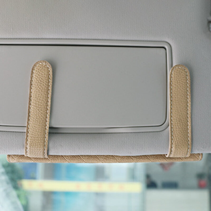 • Multifunctional Leather Car Storage Bag Visor Cover Card License Holder Hanging Tissue Bag Glasses Folder COD