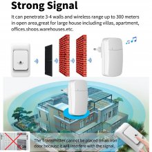 300M Waterproof LED Wireless Doorbell 52 Songs Chime Door Bell SOS EU/US/UK Plug COD