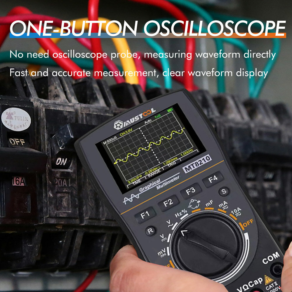MUSTOOL MT8210 Intelligent Graphical Digital Oscilloscope Multimeter 2 in 1 With 2.4 Inches Color Screen 1MHz Bandwidth 2.5Msps Sampling Rate for DIY and Electronic Test