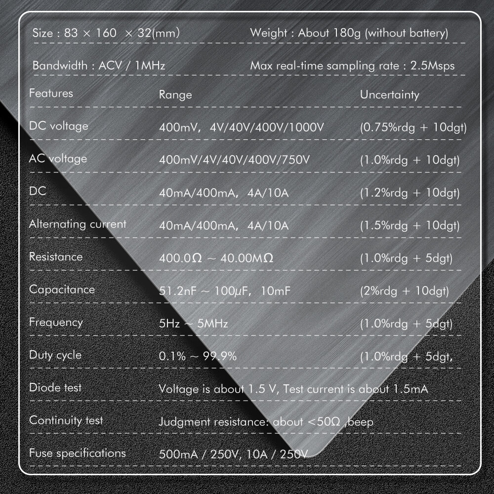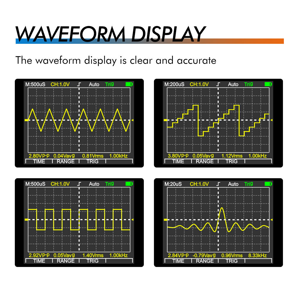 • MUSTOOL MT8210 Intelligent Graphical Digital Oscilloscope Multimeter 2 in 1 With 2.4 Inches Color Screen 1MHz Bandwidth 2.5Msps Sampling Rate for DIY and Electronic Test
