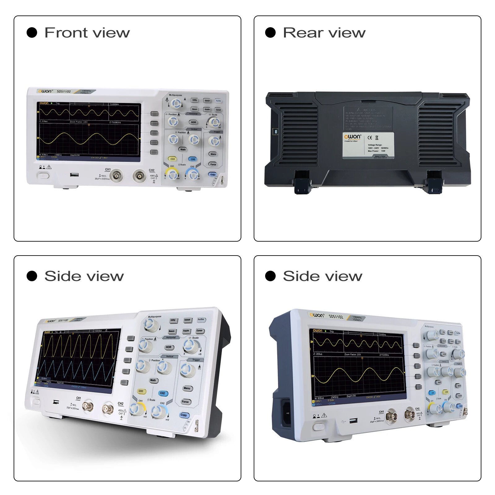 High Performance: The OWON SDS1102 oscilloscope has a 100MHz bandwidth and a 1GS/s sample rate, to offer reliable readings and high-resolution signal details. Practical Design: This 2-channel oscilloscope is designed with a 7-inch high-resolution LCD screen for clear and easy monitoring. Wide Application: It's perfect for tasks related to electronic circuit debugging, circuit testing, design and manufacture, education and training, as well as automobile maintenance and testing. Advanced Technology: It comes with SCPI and LabVIEW support for enhanced functionality and versatility. Compact and Portable: With its thin body, the device is convenient for on-the-go use, without compromising its performance.