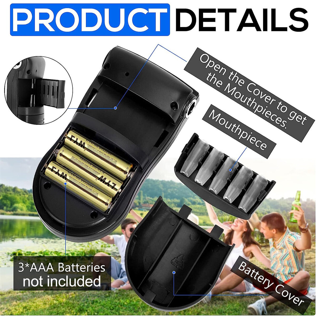 Easy to Operate: Simply warm up the breathalyzer for 15 seconds, blow into the breath inhaler for 3-5 seconds, and receive real-time results on the blue LCD screen within 3 seconds. It is powered by 3 AAA batteries (NOT included) for convenience.