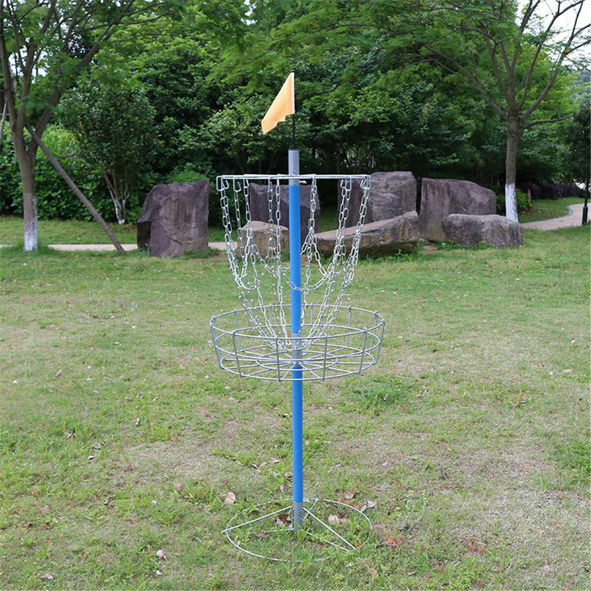 - Material: Iron- Color: Silver- Applicable to: Goal practice of disc golf basket game ● Heavy-duty & Anti-rust: This disc golf basket is constructed of powder-coated metal frame and galvanized chains. ● Excellent rust and weather resistance make this basket a durable disc sport accessory for outdoors.● Stable & Sturdy: Solid basket of heavy duty chain for better catching; welded joints and big base frame strengthen the stability of this basket, no need to worry about tipping over by the hit from the disc or wind.● Thoughtful Design: Basket for catching and storing the disc; comes with an eye-catching flag on the top to help improve the accuracy of your throw. 1 x Disc Golf Basket