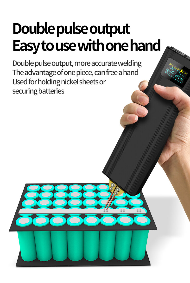 - Our Portable Handheld Spot Welder offers professional spot welding power that can be comfortably held in one hand. With its precise design and potent performance, it ensures high precision welding every time. - It features a high-definition Liquid Crystal Display that clearly shows power, gear, delay, voltage and mode information. This allows users to monitor and adjust settings for optimal performance and results effortlessly. - The spot welder provides a high level of customization with its 80 gear power adjustable settings, enabling welding of 0.1-0.2mm nickel strips. This flexibility makes it suitable for varied welding requirements. - It is equipped with a 5000mAh lithium polymer battery offering strong support for extended operations. With a design current of up to 800A (Max), this spot welder promises reliable power for your welding tasks. - Specifically designed for mobile battery welding, it supports the welding of various common nickel mobile phone batteries. Also, its portable features make it a great tool for the convenient repair of mobile phones on the go.