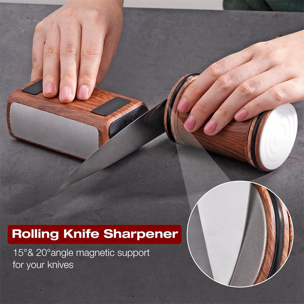 Professional Rolling Knife Sharpener Grinder with 15 & 20 Degrees Adjustable Angles Industrial Diamond and Ceramic Discs Durable for Effective Kitchen Knife Sharpening