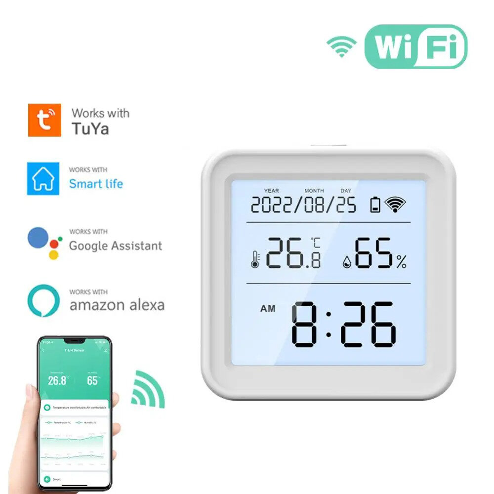High Precision Temperature and Humidity Sensing: This smart sensor uses high-precision sensors to monitor the humidity and temperature in the environment constantly. The temperature difference is ±1℃, and the humidity difference is ±5%RH. Remote Monitoring: With this WiFi temperature and humidity sensor, the temperature and humidity of the baby room or ant space can be viewed remotely, ensuring comfort and safety. Compatibility with Alexa and Google Assistant: The smart sensor can work with Alexa and Google assistant, enabling voice control. For instance, you can ask, "Alexa, what is the temperature of the TH Sensor?" and Alexa will tell you. Intelligent Linkage: Through the mobile phone APP, this sensor can be paired with other smart devices to create your customized smart scenes. According to the sensor reading, you can adjust the environment's humidity and temperature. One-key Conversion and Time Display: The sensor physical button allows one-key conversion between °C and °F. The change is uploaded to the APP in real-time. Furthermore, in pairing with the APP, the sensor can also show the current time from your phone.