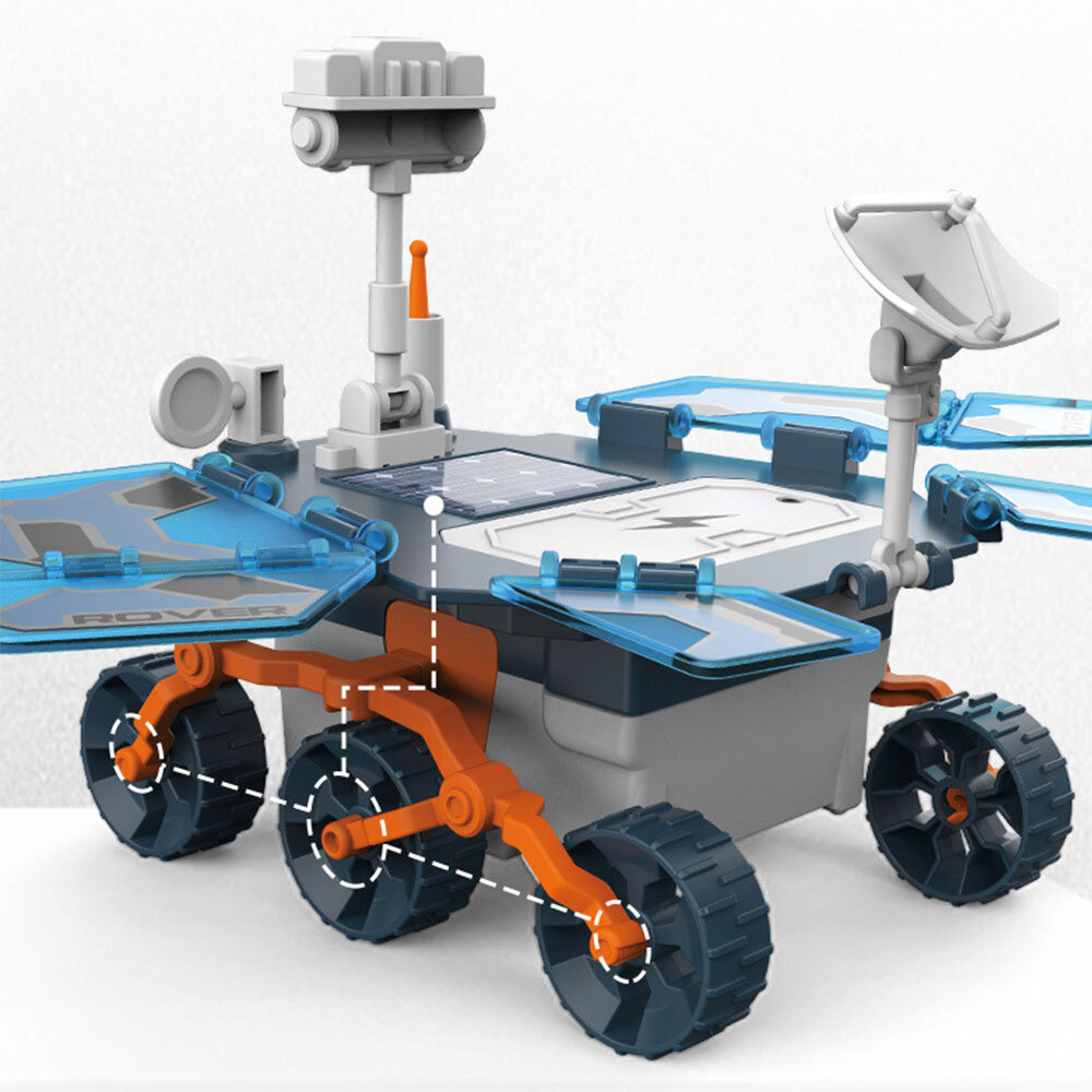 Product color: BLUE/YELLOW Product material: Plastic & Electronic Components Product size: See details below FEATURES: 【Muti Powered And More Saving】This trolley can run on solar power when it's sunny outside during the day. We can use the battery to power the trolley inside or at night. There are two power modes for solar mars rover toys. 【Fun Educational Game 】Children can learn about the mutual collaboration and interaction of mechanical transmission structures while playing with the DIY solar vehicle toy, as well as the knowledge of the kinematics of motion. 【Make A Stunning Gift】Solar rover stem kit is very suitable as a meaningful gift. Give it to kids over 6 years old on special occasions like Halloween, Christmas, and Birthday Thanksgiving. Because it has a very nice packaging.